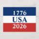 Cartão Postal 1776 EUA 2026 Patriótico Vermelho Branco e Azul