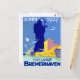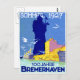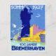 Vintage, poster de 1927, comemorando o centenário de Bremerhaven, na Alemanha, fundada em 1827. A design retrata uma visão de porto da cidade e o farol de Roter Sand ao fundo.