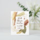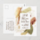 Cartão postal de citação inspiracional retrata um elegante design abstrato moderno em cores de moda quente de azul, ameixa e bege com flores de arte de linha dourada. Apresenta Bíblia Verso 1 Corintianos 16:14, "Deixe que tudo o que você faz seja feito no amor."_