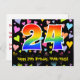 A frente deste design postal amoroso, empolgante e divertido, com tema de aniversário, apresenta um grande número de "24" tendo um padrão inspirado no gradiente do espectro arco-íris. Também apresenta a mensagem "Feliz 24.º aniversário", e um nome de destinatário personalizado. A frente também tem um padrão vibrante e colorido de corações amorosos. A parte de trás apresenta uma mensagem de saudação de aniversário editável, ou talvez pudesse ser apagada e deixada em vazio se uma mensagem for escrita manualmente. Um postal de aniversário como este pode ser uma maneira divertida de enviar desejos de aniversário a alguém que comemora seu vigésimo quarto aniversário. Cartões postais como este também podem ser usados para convidar hóspedes para uma comemoração de aniversário ou festa para alguém que está fazendo 24 anos. [~Z0000448]