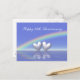 Cartão-postal com minha obra de arte original de dois corações prateados flutuando na água sob um arco-íris com texto personalizável que diz "Feliz 25 Aniversário".