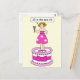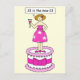 Uma moça de desenho animado de pé sobre um grande bolo, vestindo um vestido cor-de-rosa e segurando um coquetel, dizendo que "33 são os novos 23".