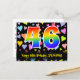 A frente deste divertido, colorido e emocionante design de cartão postal temático de aniversário apresenta um grande número "46" com um padrão de gradiente de espectro de arco-íris. Também apresenta a mensagem "Feliz Aniversário de 46 anos," e um nome de destinatário personalizado. A frente também apresenta um vibrante e colorido padrão de fundo em forma de coração amoroso. A parte de trás apresenta uma mensagem de saudação de aniversário personalizada, ou talvez possa ser limpa e deixada em branco se uma mensagem for escrita à mão. Um cartão postal de aniversário como este pode ser uma maneira divertida de enviar desejos de aniversário para alguém que está celebrando seu quadragésimo sexto aniversário. Cartões postais como este também podem ser usados para convidar convidados para uma celebração de aniversário ou festa sendo realizada para alguém que está completando 46 anos de idade. [~Z0000448]