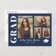 Anuncie orgulhosamente o seu segundo grau ou formandos com estes cartões postais personalizados de colagem de 4 fotos em cores azul e branco marinho. Basta deixar suas fotos pessoais e, se necessário, usar a ferramenta design para recortá-las para o ajustado perfeito. Você pode até personalizar a cor do plano de fundo para uma de suas opções. Essas placas de na moda podem facilmente se tornar seus convites de festas de formando pessoal simplesmente mudando o texto conforme necessário. Para ver mais itens como este, visite minha loja aqui em "www.Zazzle.com/LakeViewCardCo". Obrigados