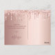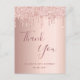 Um cartões de agradecimentos para 50º aniversário. Uma cor metálica de fundo rosa dourada falsa. Com pingos de brilho sujo, pintura com pingos. Na frente, um grande e escuro, rosa dourado, escrita à mão, colorida, e o texto: Obrigado, seu texto, título e uma data. Back: Modelo para sua nota de agradecimento e seu nome.