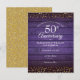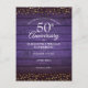 Com delicados corações de amor dourados em confete sobre um fundo de madeira roxa rústica. Personalize com as informações especiais da sua data de bodas de ouro de cinquenta anos em letras elegantes. Criado por Thisisnotme©