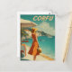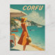 Este poster vintage elegante captura o charme ensolarado de Corfu com uma mulher na moda dos anos 50 parada na praia. Vestida com um vestido clássico de verão e olhando sobre o espumante Mar Jônico, ela encarna o glamour eterno das férias mediterrânicas do século médio. Com cores retrorreflectoras suaves e texturas nostálgicas, este trabalho de arte é perfeito para amantes de viagens vintage e entusiastas do decoro de praia.