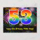 Cartão Postal 53º Aniversário – Padrão Divertido de Fogos de Art