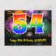 A frente deste emocionante, colorido e divertido design de cartão postal temático de aniversário apresenta um grande número "54" com um padrão de gradiente de espectro de arco-íris, juntamente com a mensagem "Feliz Aniversário de 54 anos", e um nome de destinatário personalizado. A frente também apresenta um padrão de fundo colorido e vibrante inspirado em fogos de artifício comemorativos. A parte traseira apresenta uma mensagem de saudação de aniversário personalizada, ou talvez possa ser limpada e deixada em branco se uma mensagem for escrita à mão. Um cartão postal de aniversário personalizável como este pode ser uma maneira divertida de enviar uma mensagem celebrando o aniversário de cinquenta e quatro anos de alguém. Cartões postais como este também podem ser usados para convidar convidados para uma festa de aniversário realizada para alguém que está completando 54 anos. [~Z0000446]
