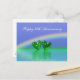 Cartão postal com minha imagem de corações esmeralda flutuando na água sob um arco-íris com texto personalizável.