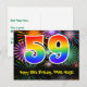 A frente deste design de cartão postal de aniversário emocionante, colorido e divertido apresenta um grande número "59" com um padrão de gradiente de espectro de arco-íris inspirado, juntamente com a mensagem "Feliz Aniversário de 59 anos", e um nome de destinatário editável. A frente também apresenta um padrão de fundo vibrante e colorido inspirado em fogos de artifício comemorativos. O verso apresenta uma mensagem de saudação de aniversário personalizada, ou talvez possa ser limpo e deixado em branco se uma mensagem for escrita à mão. Um cartão postal de aniversário personalizável como este pode ser uma maneira divertida de enviar uma mensagem em celebração do aniversário de alguém de 59 anos. Cartões postais como este também podem ser usados para convidar convidados para uma celebração de aniversário ou festa sendo realizada para alguém que está fazendo 59 anos. [~Z0000446]