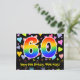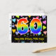 A frente deste divertido, alegre e animado design de cartão postal temático de aniversário apresenta um grande número "60" com um padrão inspirado no gradiente do espectro do arco-íris, juntamente com a mensagem "Feliz 60º Aniversário", e um nome de destinatário editável. A frente também tem um padrão de fundo de formas de coração amorosas coloridas e vibrantes. O verso apresenta uma mensagem de saudação de aniversário personalizada, ou talvez possa ser limpo e deixado em branco se uma mensagem for escrita à mão. Um cartão postal de aniversário personalizado como este pode ser uma maneira divertida de reconhecer o aniversário de alguém de 60 anos. Cartões postais como este também podem ser usados para convidar convidados para uma celebração de aniversário ou festa que está sendo realizada para alguém que está completando 60 anos de idade.