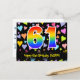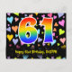 A frente deste emocionante, colorido e carinhoso design de cartão postal temático de aniversário apresenta um grande número "61" com um padrão inspirado em gradiente de espectro de arco-íris, juntamente com a mensagem "Feliz Aniversário de 61 anos", e um nome de destinatário personalizado. A frente também apresenta um padrão vibrante e colorido de corações amorosos. O verso apresenta uma mensagem de aniversário personalizada, ou talvez possa ser limpo e deixado em branco se uma mensagem for escrita à mão. Um cartão postal de aniversário personalizado como este pode ser uma maneira divertida de enviar uma mensagem em celebração do aniversário de 61 anos de alguém. Cartões postais como este também podem ser usados para convidar convidados para uma festa de aniversário ou celebração que está sendo realizada para alguém que está completando 61 anos de idade.