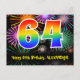 Cartão Postal 64º Aniversário - Padrão Divertido de Fogos de Art