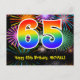 Cartão Postal 65º Aniversário – Padrão Divertido de Fogos de Art
