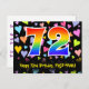 A frente deste design de cartão postal de aniversário amoroso, colorido e emocionante apresenta um grande número "72" com um padrão inspirado no gradiente do espectro do arco-íris, juntamente com a mensagem "Feliz Aniversário de 72 anos", e um nome de destinatário editável. A frente também tem um fundo vibrante e colorido com um padrão de corações amorosos. A parte traseira apresenta uma mensagem de saudação de aniversário personalizada ou pode ser limpa e deixada em branco se uma mensagem for escrita à mão. Um cartão postal de aniversário personalizável como este pode ser uma maneira divertida de enviar uma mensagem em celebração do aniversário de setenta e dois anos de alguém. Cartões postais como este também podem ser usados para convidar convidados para uma celebração de aniversário realizada para alguém que está completando 72 anos de idade. [~Z0000448]
