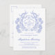 Uma elegante crista floral azul-vintage francesa toma palco central neste convite de aniversário de eterno. Ornamentado, formal e muito feminina fará qualquer dama de aniversário se sentir muito especial. Os suprimentos da parte coordenadora estão disponíveis.