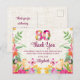 Envie um agradecimento caloroso depois de um aniversário marcante com este elegante cartão postal floral. Apresentando vibrantes flores aquarelas em um fundo de linho macio com um ousado "80", este design personalizável é a forma perfeita de obrigado para convidados e entes queridos. Aproveite!