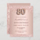 Um convite moderno, na moda e glamouroso para uma festa de aniversário 80. Um fundo metálico rosa dourado falso com um brilho elegante rosa dourado, pintura gota-a-gota. O nome é escrito com um moderno e escuro, rosa dourado, escrito com letra de estilo manuscrito. Personalize e adicione os detalhes da sua festa. O número 80 é escrito com uma fonte de estilo balão, script.
