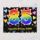 A frente deste cartão postal temático de aniversário, colorido e emocionante, apresenta um grande número "85" com um padrão de gradiente de espectro de arco-íris. Também apresenta a mensagem "Feliz 85º Aniversário" e um nome de destinatário editável. A frente também apresenta um fundo colorido e vibrante com um padrão de formas de coração amorosas. A parte traseira apresenta uma mensagem de saudação de aniversário personalizada ou pode ser limpada e deixada em branco se uma mensagem for escrita à mão. Um cartão postal de aniversário personalizado como este pode ser uma maneira divertida de enviar uma mensagem celebrando o aniversário de alguém de oitenta e cinco anos. Cartões postais como este também podem ser usados para convidar convidados para uma festa de aniversário ou celebração para alguém que está completando 85 anos de idade.