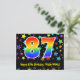 A frente deste design de cartão postal colorido, emocionante e divertido com tema de aniversário apresenta um grande número "87" com um padrão de gradiente de espectro de arco-íris, juntamente com a mensagem "Feliz Aniversário de 87 anos", e um nome de destinatário personalizável. A frente também apresenta um padrão de fundo de formas de estrelas coloridas e vibrantes. A parte traseira apresenta uma mensagem de saudação de aniversário personalizável, ou talvez possa ser limpada e deixada em branco se uma mensagem for escrita à mão. Um cartão postal de aniversário como este pode ser uma maneira divertida de enviar desejos de aniversário para alguém que está celebrando seu aniversário de 87 anos. Cartões postais como este também podem ser usados para convidar convidados para uma celebração de aniversário realizada para alguém que está completando 87 anos de idade.