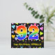 A frente deste design de cartão postal de aniversário amoroso, divertido e colorido apresenta um grande número "92" com um padrão de gradiente de espectro de arco-íris. Também apresenta a mensagem "Feliz aniversário de 92 anos," e um nome de destinatário personalizado. A frente também tem um padrão de fundo vibrante e colorido com formas de coração amorosas de diferentes tamanhos. A parte de trás apresenta uma mensagem de saudação de aniversário editável, ou talvez possa ser limpada e deixada em branco se uma mensagem for escrita à mão. Um cartão postal de aniversário personalizável como este pode ser uma maneira divertida de enviar uma mensagem em celebração do aniversário de noventa e dois anos de alguém. Cartões postais como este também podem ser usados para convidar convidados para uma festa de aniversário realizada para alguém que está completando 92 anos de idade. [~Z0000448]