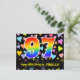 A frente deste design de cartão postal de aniversário amoroso, colorido e animado apresenta um grande número "97" com um padrão de gradiente de espectro de arco-íris. Também apresenta a mensagem "Feliz Aniversário de 97 anos," e um nome de destinatário personalizado. A frente também tem um padrão de fundo de corações amorosos coloridos e vibrantes. O verso apresenta uma mensagem de aniversário personalizada, ou talvez possa ser limpo e deixado em branco se uma mensagem for escrita à mão. Um cartão postal de aniversário personalizado como este pode ser uma maneira divertida de reconhecer o aniversário de alguém de 97 anos. Cartões postais como este também podem ser usados para convidar convidados para uma celebração de aniversário realizada para alguém que está completando 97 anos de idade. [~Z0000448]