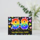 A frente deste divertido, amoroso e emocionante design de cartão postal temático de aniversário apresenta um grande número "98" com um padrão inspirado em gradiente de espectro de arco-íris. Também apresenta a mensagem "Feliz Aniversário de 98 anos," e um nome de destinatário personalizável. A frente também apresenta um fundo vibrante e colorido com um padrão de formas de coração amorosas. A parte de trás apresenta uma mensagem de saudação de aniversário personalizável, ou talvez possa ser limpa e deixada em branco se uma mensagem for escrita à mão. Um cartão postal de aniversário personalizável como este pode ser uma maneira divertida de enviar uma mensagem em celebração do 98º aniversário de alguém. Cartões postais como este também podem ser usados para convidar convidados para uma celebração de aniversário ou festa sendo realizada para alguém que está completando 98 anos de idade.