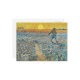 O Sower (1888), de Vincent van Gogh, é uma poderosa pintura Poste-impressionista que retrata um fazendeiro semeando sementes em um vasto campo sob um céu amarelo radiante. A trabalho de arte reflete a admiração de Van Gogh pelo trabalho rural e seu fascínio pelos ciclos da natureza. A paleta de cores vívidas de amarelos ouros, azuis profundos e verdes ricos, juntamente com as pinceladas expressivas, cria uma cena dinâmica e simbólica. O sol sobredimensionado domina o céu, lançando um brilho espiritual sobre a figura e a paisagem, imbuindo a cena com um senso de esperança e renovação. Use as ferramentas de design para adicionar texto personalizado ou personalizar a imagem.