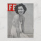 A beautiful woman from a magazine cover photo from 1939 poses in her swimsuit on the beach.