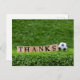 Cartão Postal A bola de futebol com Obrigados diz-se sobre grama
