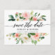 Script de caligrafia moderna. Casamento Verde Floral Elegante Cor de Água Rosa Espelhada Salva O Cartão-Postal inclui rosas brancas cor-de-rosa e outros belos verdes.