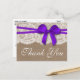 A coleção rústica de arcos roxos é uma design com um adorável fundo de efeito rupestre rústico com uma trim romântica de efeito de renda branca vintage terminada com uma fita roxa espantosa com arco. Esses cartões postais podem ser personalizados para sua ocasião especial e fariam o cartões de agradecimentos perfeito para qualquer casamento, chá de panela, festa de noivado, festa de aniversário e muito, muito mais. *Observe que o Zazzle só vende cartões postais impressos para que esses obrigados que você faz não tenham nenhum material real de burlap, renda ou fita.