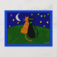 Cartão Postal "À Espera", Presentes de Arte de Gato--Desenhado p