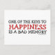 Uma das chaves para a felicidade é uma memória ruim. Ditos e citações engraçados e humorísticos para períodos de atenção curtos, idosos, envelhecer, etc. Dito sobre envelhecer e ficar mais velho em camisetas e presentes.