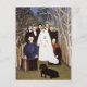Um cartão postal de belas artes com a pintura do artista francês Henri Rousseau (1844-1910), The Festa de casamento (1905). Um retrato de estilo ingênuo de uma noiva e noiva. Rousseau se representou no grupo atrás da noiva à direita.