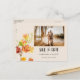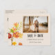 A selvagem do outono elegante deixa fotos salvando o cartão-postal da data encare a beleza encantadora da estação com nosso cartão-postal Elegante do outono deixa fotos salvando a data. Este postal exude a elegância do eterno, apresentando uma fotografia espantosa da sua escolha, acentuada por folhas delicadas do outono. É a maneira perfeita de anunciar seu próximo dia especial com um toque de charme sazonal. Personalize-o com a sua única fotografia e detalhes para criar uma guardiã que captura a essência da sua história de amor."