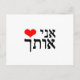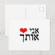 Cartão Postal A frase "Eu te amo" em hebraico com coração vermel