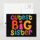 Esta design corajosa e colorida é uma maneira fofa de mostrar quem é a irmã mais velha da sua família nos feriados, aniversários e comemorações familiares. O texto diz a IRMÃ GRANDE CUTEST com pequenos corações. Em bebês, crianças e T-shirts adultas, autocolantes, cartões de saudação, sacos de tote e muito mais! Correspondente à design da Irmã Pequena também disponível original PinkInkArt!