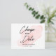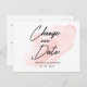 lavagem de cor-de-água cor-de-rosa com letra manuscrita "mude a data" para o atraso do seu casamento.