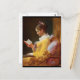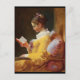 Belas artes de Fragonard. Menina vestindo um vestido amarelo. A pintura em um fundo escuro mostra a leitura de um livro que se senta no colo.