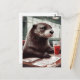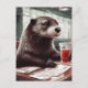 Uma lontra desfruta de uma bebida aromatizada com cereja em uma pintura gerada pela IA de café