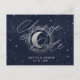 Nossa coleção "Casamento celeste Prateado" apresenta uma bela lua crescente com estrelas prateadas em vários designs sobre um fundo azul-da-meia-noite de veludo emparelhado com fontes elegantes. Fácil de personalizar e você pode escolher entre muitos itens desta coleção em nossa loja.