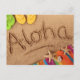 Cartão Postal A palavra Aloha escrita em uma praia arenosa, com