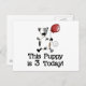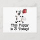 Camisetas fofos, aniversário de 3 anos, design, canecas, camisas, ímanes, cartões, adesivos e muito mais com filhotes, balões de aniversário vermelhos, e texto que diz: "Este Cachorro é 3 Hoje!".