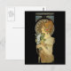 Imagem de Vintage art nouveau de jovem em perfil segurando uma pena branca. Belas artes pelo artista checo Alfons Mucha.