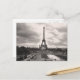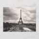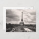 Este cartão mostra uma foto em preto e branco da famosa torre Eiffel tirada de longe. Silhuettes contra um céu nublado digitalmente avançado. Também consiste na rua de Paris, debaixo da torre.