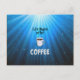 A vida começa depois do café, design de starburst azul, cartão postal.