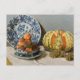 Cartaz de belas artes com a pintura impressionista "Ainda Vida com Melão" (1872), de Claude Monet (1840-1926). Uma mesa vibrante de melão maduro e pêssegos ao lado de uma placa de porcelana azul e branca.