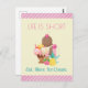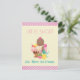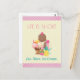 Cartão-postal bonito e engraçado ilustrado com desenho de um sundae de sorvete de 3 furos com aspersores e um cone de sorvete com uma cobertura de solteiro e uma tigela de sorvete. Cereja em cima. Morangos e ananás no fundo. Sumério e doce.